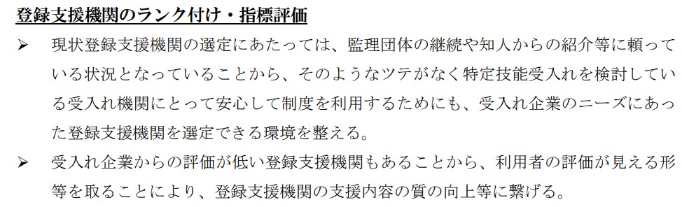正直、登録支援機関の立ち位置を「支援」という曖昧な立場にしたため、最終的な責任は「受入企業」へ責任転嫁、よって選ぶ方も何をもって数多くの支援機関から選択をすれば良いのか分からないのが現状です。